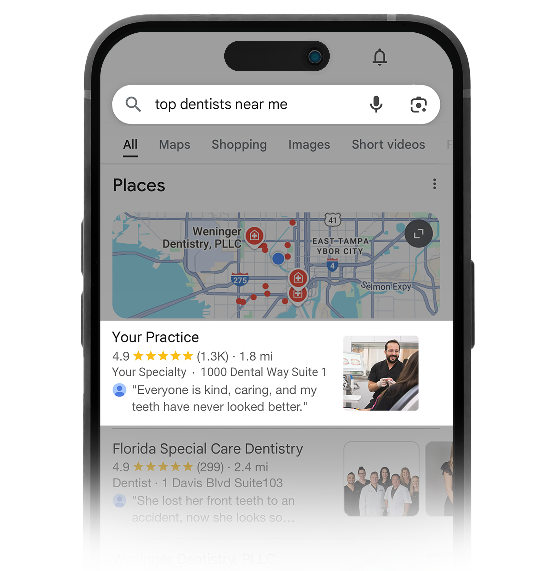 Local SEO helps your practice get found online by people in your area who are already looking for the services you offer. Whether someone searches for “dentists near me” or “chiropractic care in [your city],” you want your practice to show up at the top. Most clients begin their search online, and they usually pick from the first few results they see.